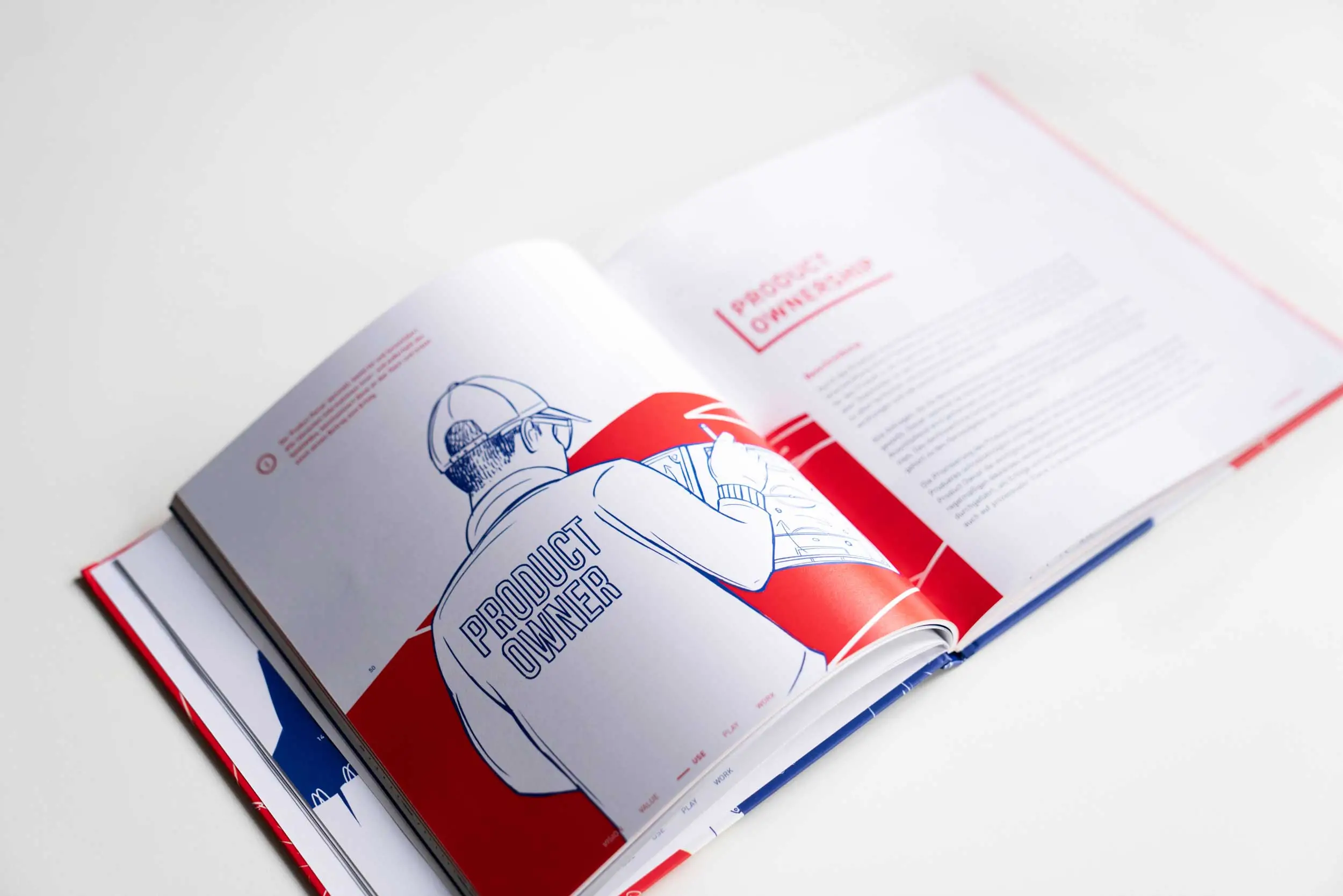 Das Layout und Design des Playbooks, sowie das Erstellen der Visuals, wurde komplett von HelloAgile und HelloDesign übernommen. Anpassungen der Designs wurden im Rahmen der Korrekturschleifen sukzessive vorgenommen und so das Layout und die Anmutung des Playbooks im Prozess immer weiter verfeinert und präzisiert.