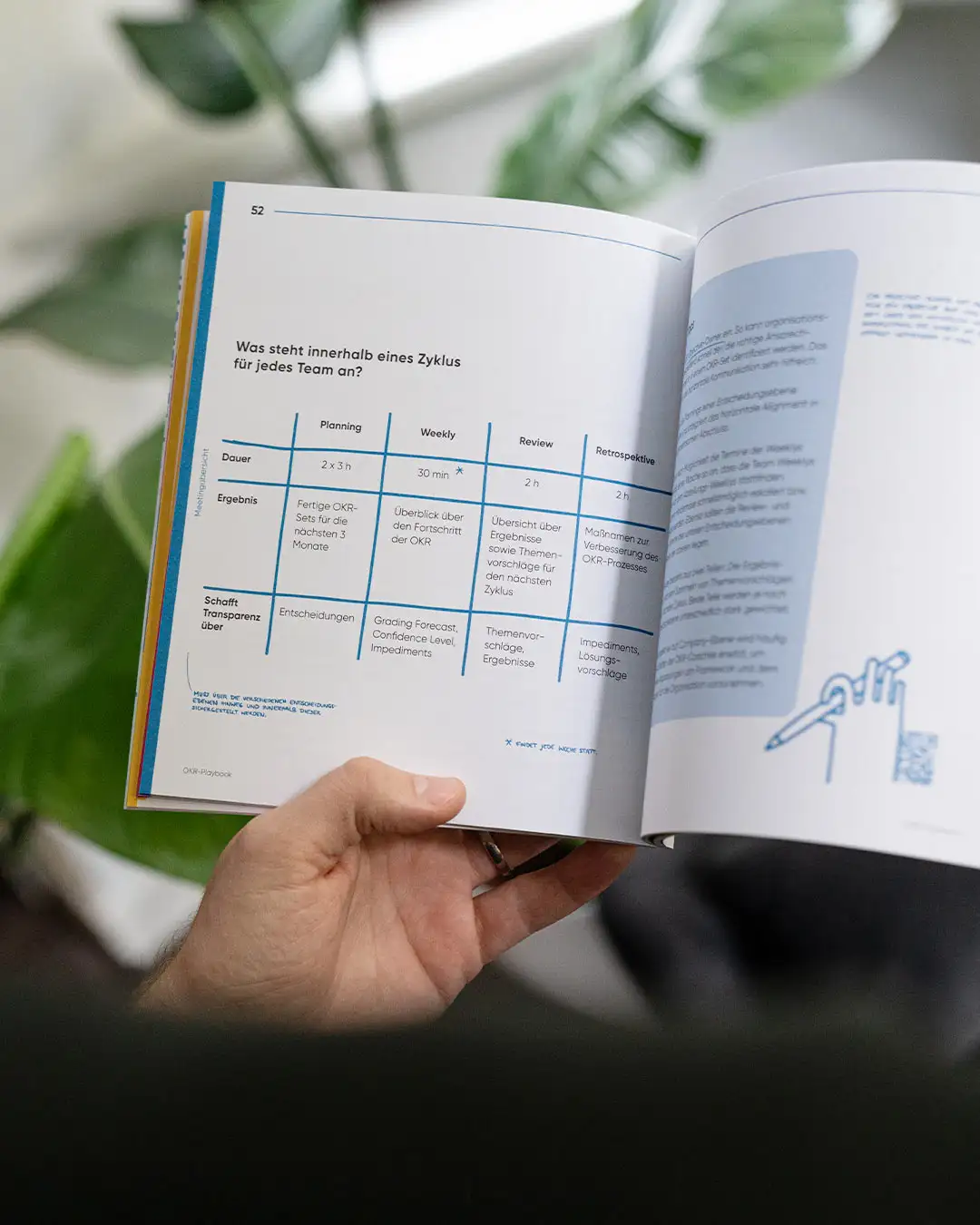 Beipsielagenden inklusive Zeiten und Teilnehmer:innen zu allen OKR-Events machen das Buch zum Helfer für deine Planung.