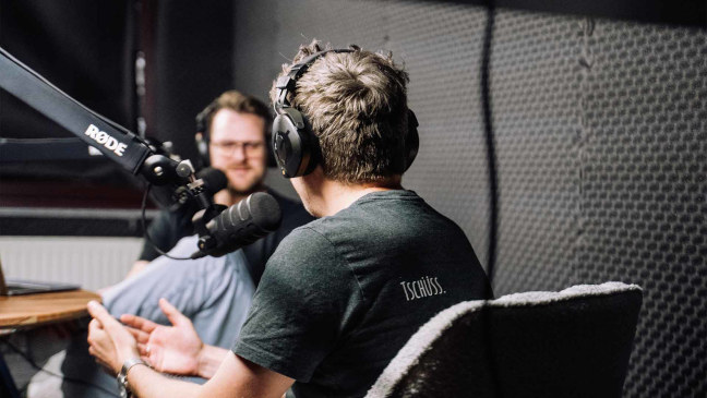 Möbel: 4x Rode Podcast Mikrofone, 1x Rodecaster Mischpult